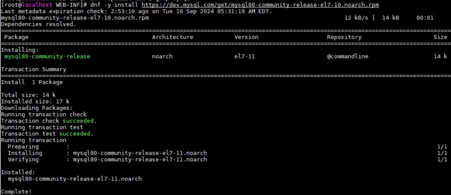 # dnf -y install https://dev.mysql.com/get/mysql80-community-release-el7-10.noarch.rpm