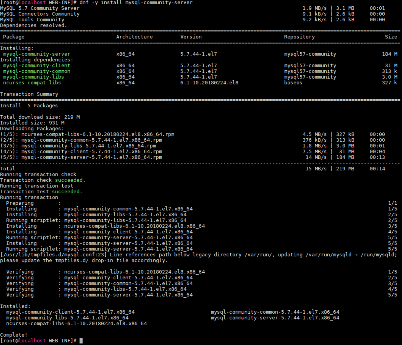 # dnf -y install mysql-community-server