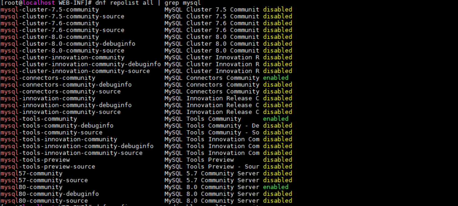 # dnf repolist all | grep mysql