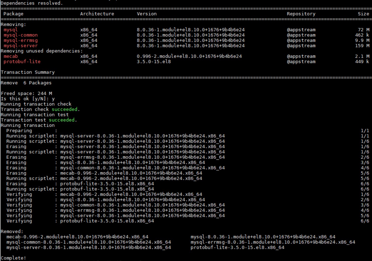 # yum remove mysql*