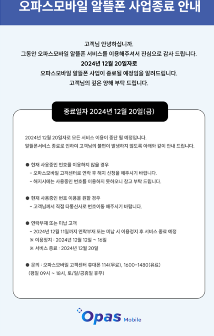많은 알뜰폰 사업자들이 생겨나고 이렇게 망하고 하는듯 하다. 많은 업체가 경쟁을 해야 소비자는 저렴한 요금제를 쓸수 있는데 살짝 아쉽다.
