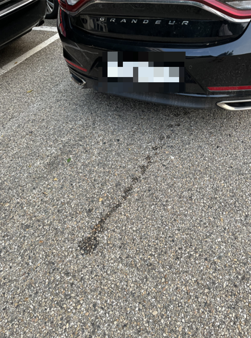 어느날 차를 잠깐 정차하고 후진 후 주차를 했는데 어라..? 뭔가 바닥에 물같은게 떨어져 있다.