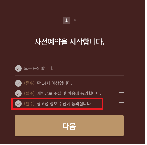 사전예약을 하자.. 어라..? 광고성 정보 수신에 동의합니다. 보통 이런건 선택인데.... 역시 NC다.