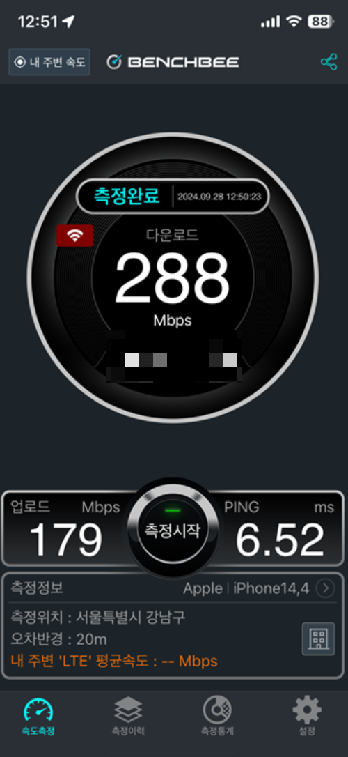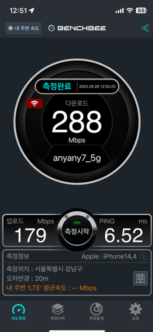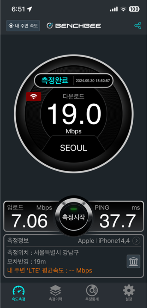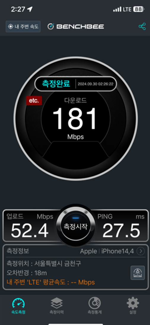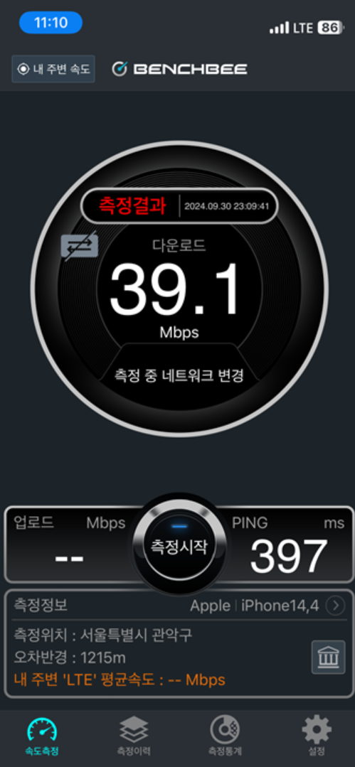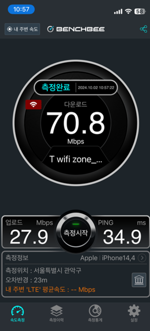 지하철에 T 와이파이 해봤는데 역시 퇴근시간이라 측정 불가..