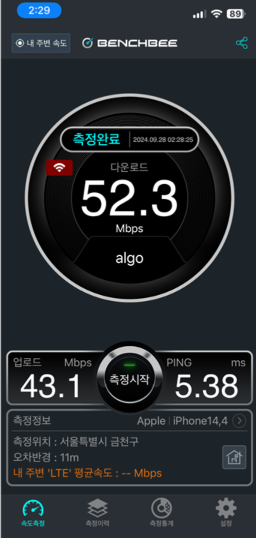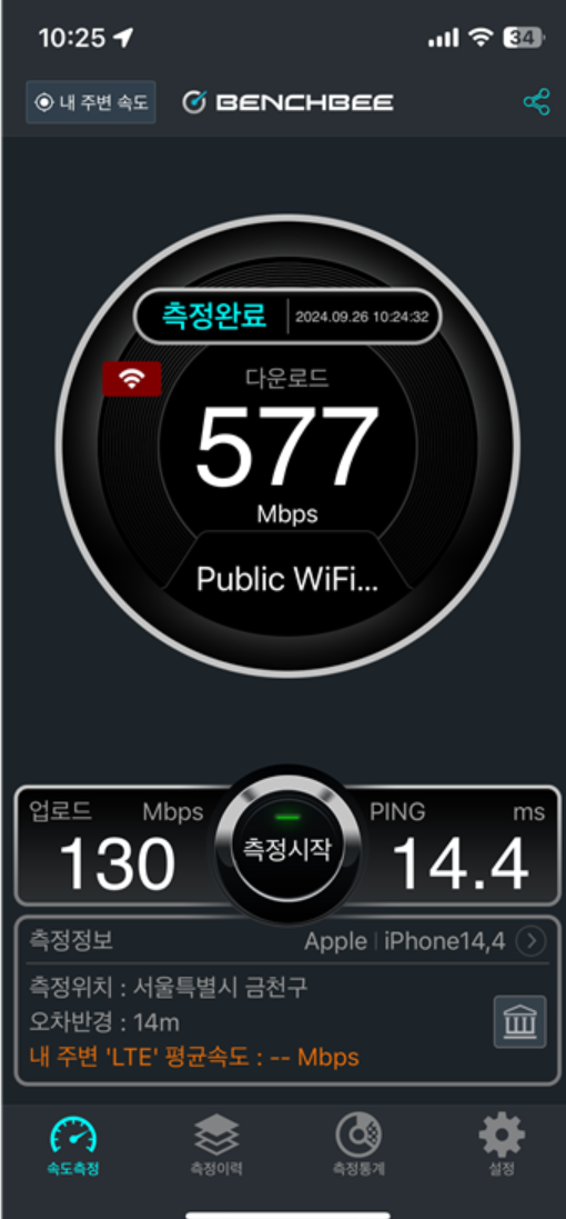 문득.. 공공와이파이 속도는 어떨까? 하고 속도 측정 해봤다.
