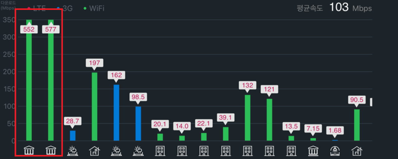 시간대나 상황에 따라 속도가 천차만별이겠지만 그래도 의외의 결과가 나왔다.