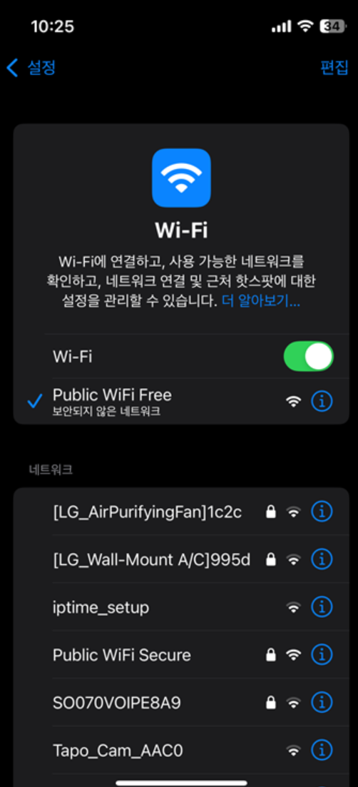 버스에 타서 public WiFi Free 로 연결해서