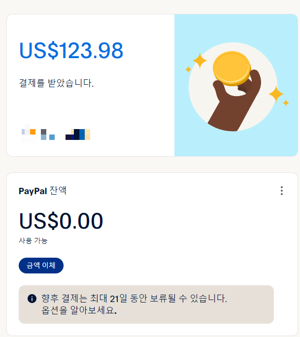 페이팔로 돈이 들어 왔는데 바로 자금이 보류 중입니다. 라고 메일이 왔다.