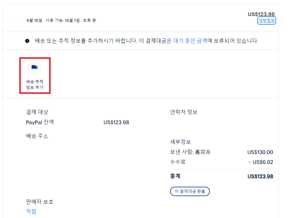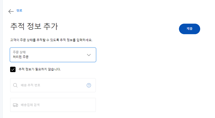 이렇게 나오면 배송 추적 정보 추가를 누르자.