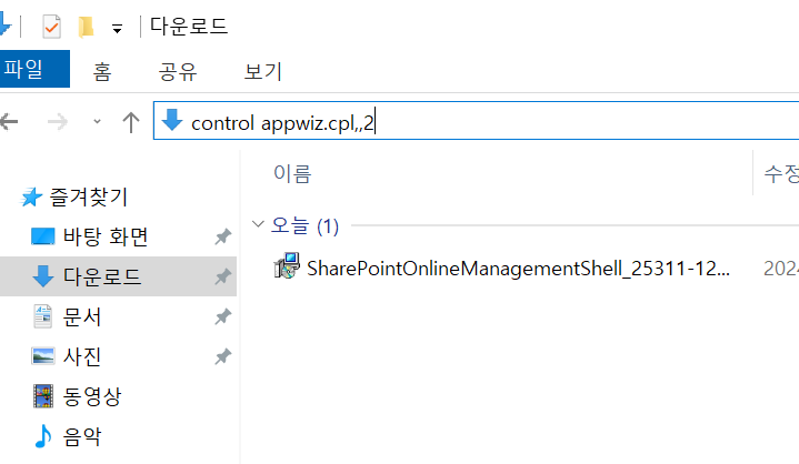 내컴퓨터 주소란에 control appwiz.cpl,,2 입력후 엔터