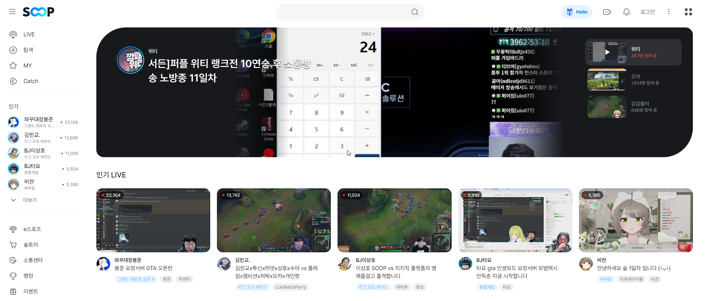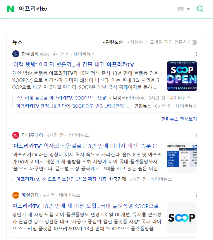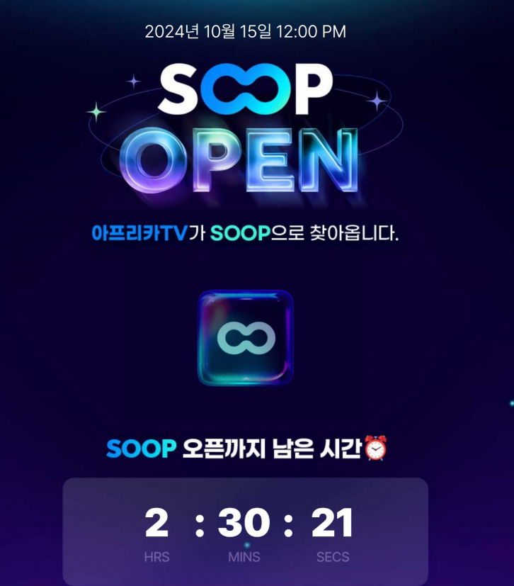 10월 15일 12:00 PM 부로 아프리카TV 가 SOOP 으로 변경되었다.