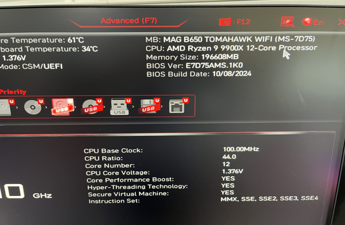 9900X, MSI MAG B650, 192GB 토마호크 WIFI 사용후기
