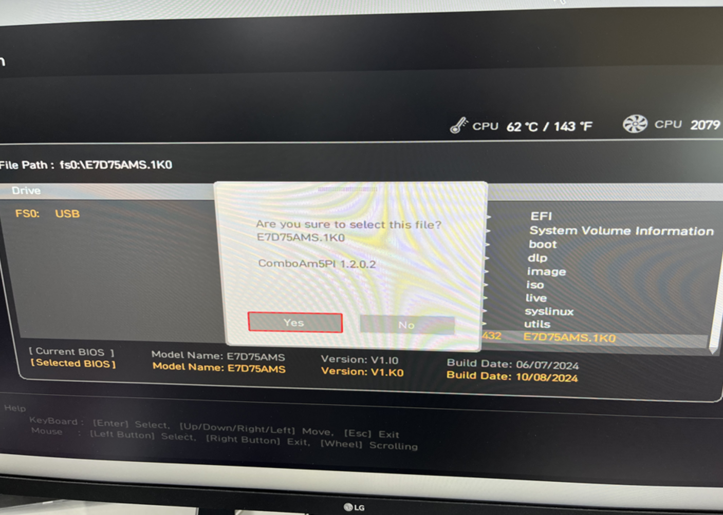 기본 바이오스는 V1.10[06/07/2024] 이고 최신 버전은 V1.K0[10/08/2024] 버전이다.