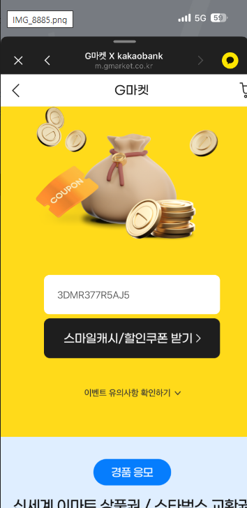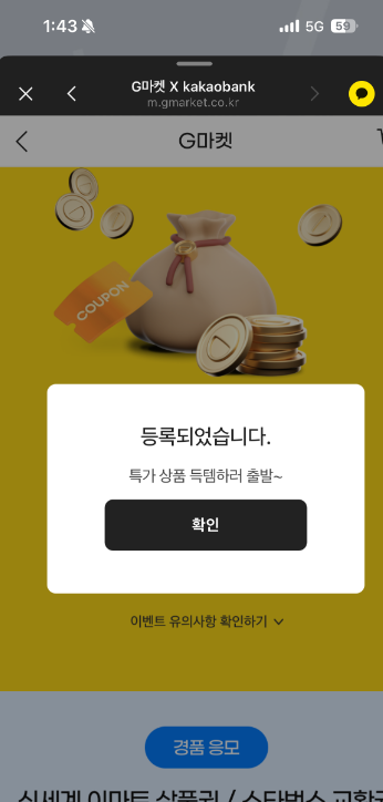 이벤트 쿠폰이 온다.(이미 사용한 쿠폰임)