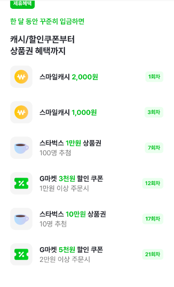 최소 100원 부터 3만원까지 적금 넣을 수 있으니 원하는대로 하면 된다.