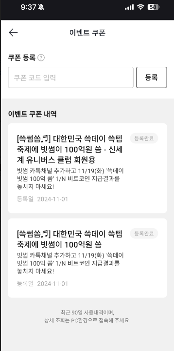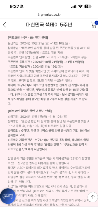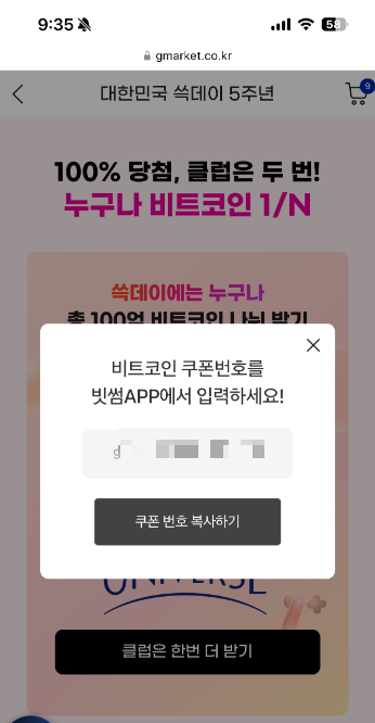 대한민국 쓱데이 5주년 이벤트 총 100억 비트코인 나눠받기!! 쿠폰 등록 하는 방법
