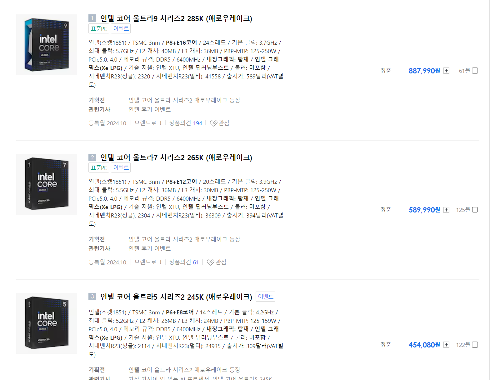 가격은 14세대와 비슷하게 나왔으며 성능은 더 안나온다는 평이 많다. 그대신 발열과 전력을 많이 줄였다고 한데.. 글쎄..