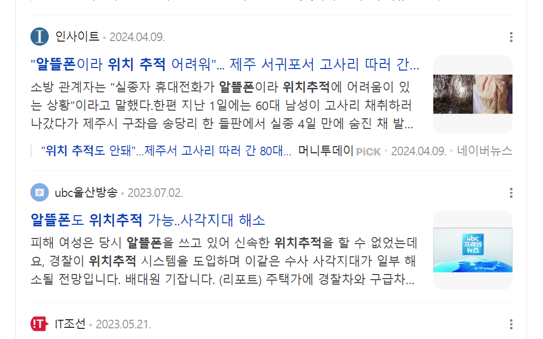 그러니 결론은 요즘 나오는 알뜰폰 들은 위치추적이 잘 되니 걱정 하지 말고 사용하자~ 끝!~