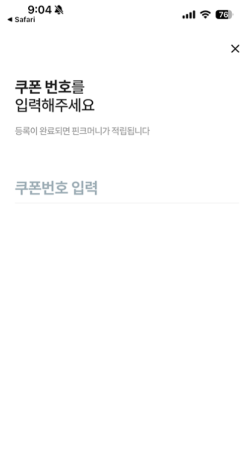 핀크를 이용해서 가입을 하게 되면 가입 하고 1~2달 후에 위와 같이 적립금 문자가 온다.(쿠폰은 이미등록되어 사용불가능~)
