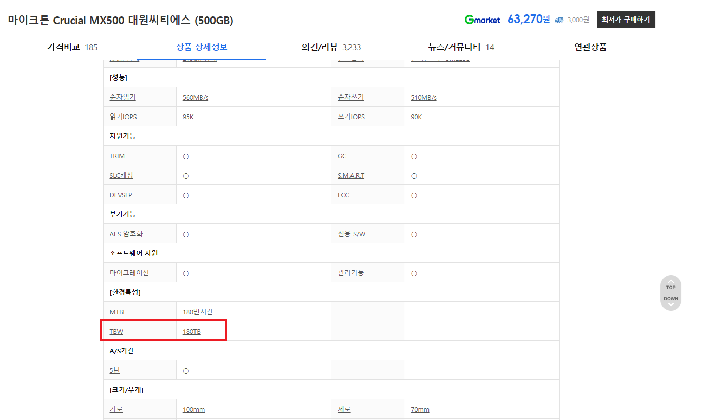 즉 해당 제조사에서 보증 하는 쓰기 최대 용량이다 만약에 저 수치를 오버 했을때 AS 를 하면 안해준다는 말이기도 한다.