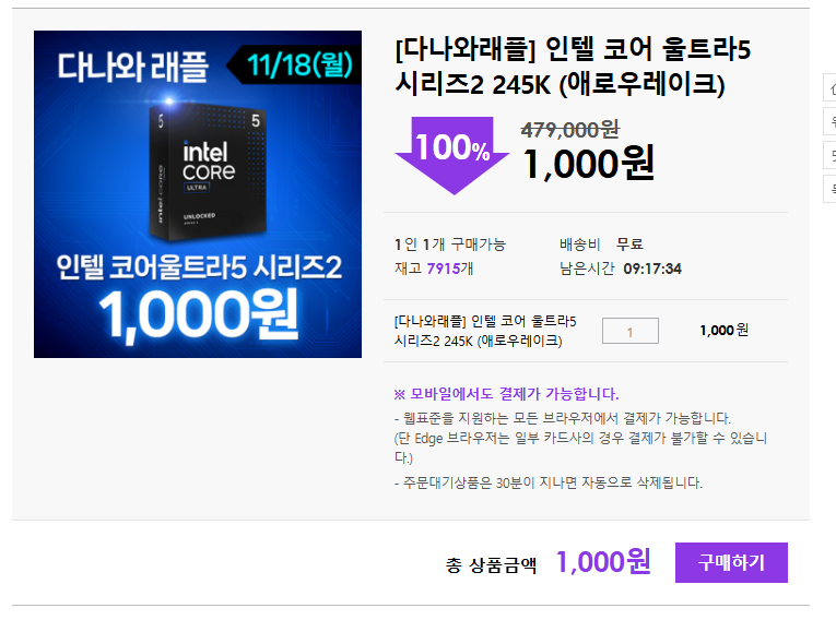 11/18 ~ 11/22일까지 1,000원에 구매 할수 있는 이벤트이고