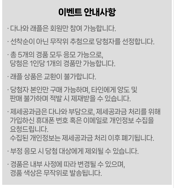 총 5개 경품 모두 응모가 가능하고 당첨은 1인당 1개의 경품만 가능하다고 한다.