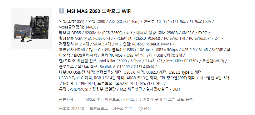 마지막으로 Z890 몇몇보드중에 intel killer 내장랜 장착된게 있는데(MS Z890 토마호크도동일하다) 리눅스 드라이버가 아직 안나왔다. 리눅스 환경이라면 intel killer 랜카드 인지 확인 후 구매하자.