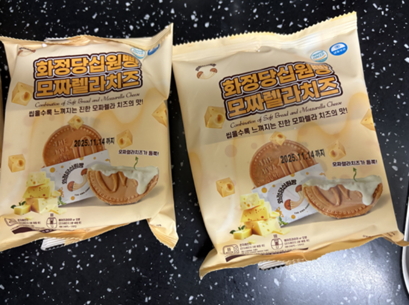 음...... 맛은... 퍽퍽한 개란빵안에 치즈가 있는... 경주 10원빵을 현장에서 안먹어봐서 그럴수 있는데 경험삼아 먹는거지 굳이 안사먹을것 같다.