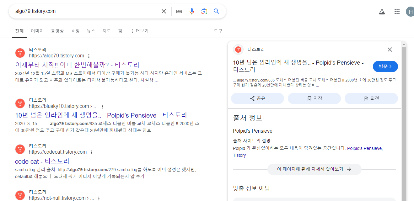 하지만 자신의 블로그가 아닌 이상 이방법으로는 확인 할 수가 없다.
