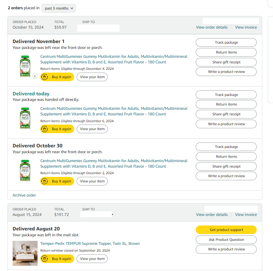 비타민 구매는 벌써 10/22일 59.97 모두 결제가 됐는데 추가로 결제가 된것이다.