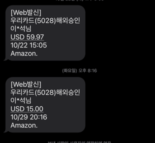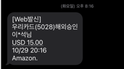 어느날 위와 같이 아마존에서 15.00 달러가 결제되었다