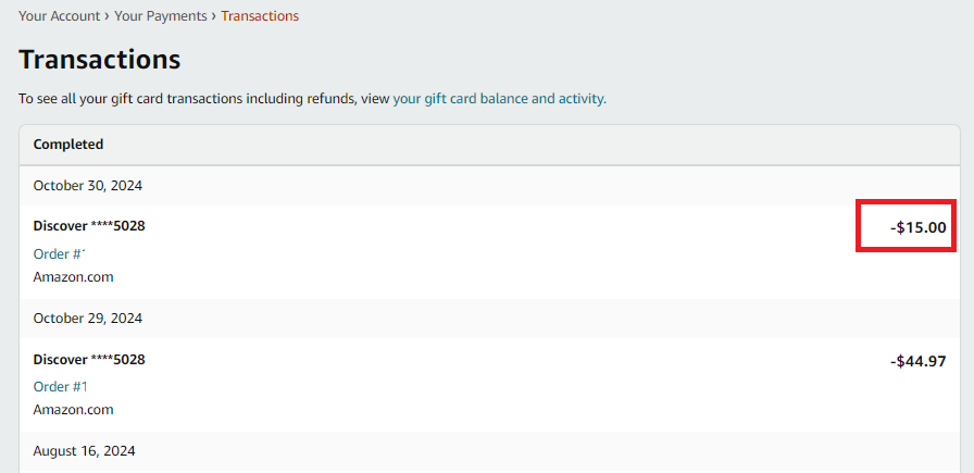 구매내역에는 15달러가 없다. 뭐지? 뭘 구매 한거지? 디지털인가?