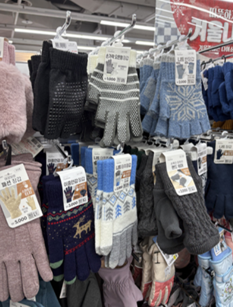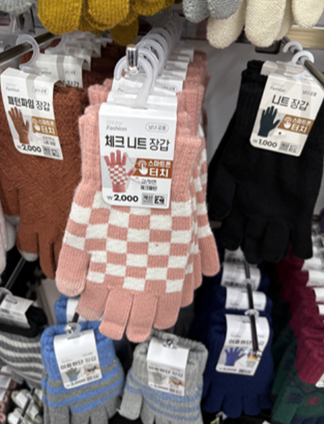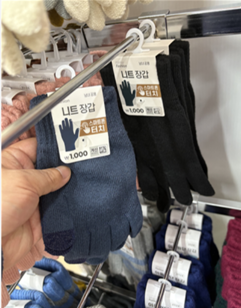 그중에 1,000원짜리 니트 장갑을 선택했다. 가격도 저렴하고 촉갑도 좋다. 제일 마음에 드는건 스마트폰 터치 가능!!