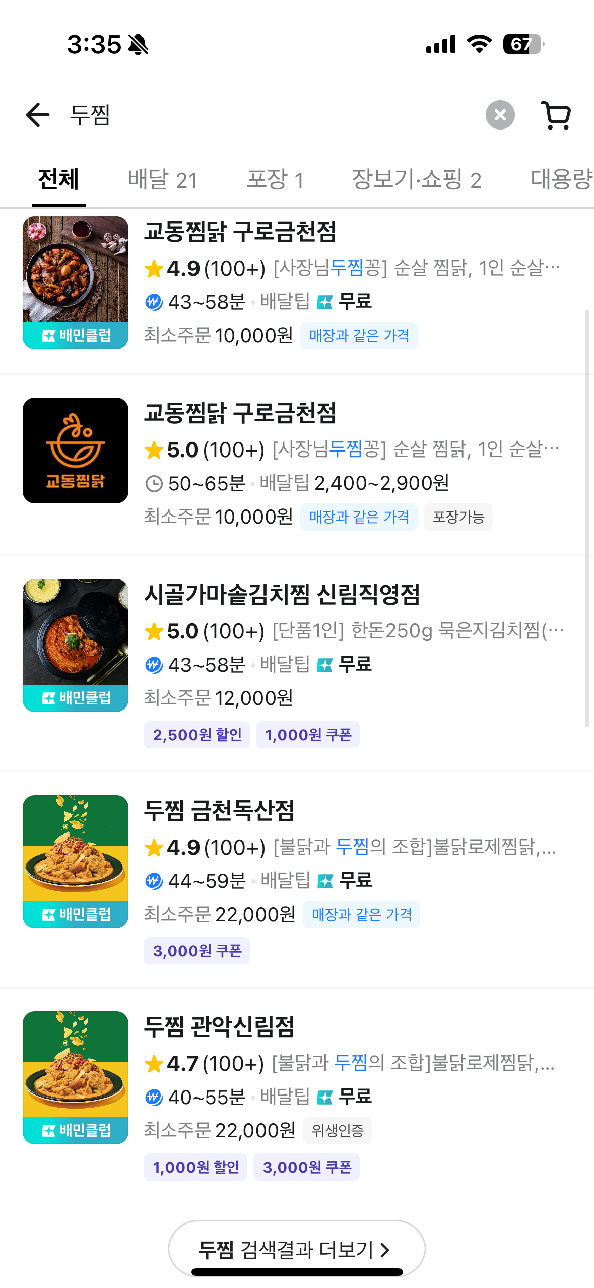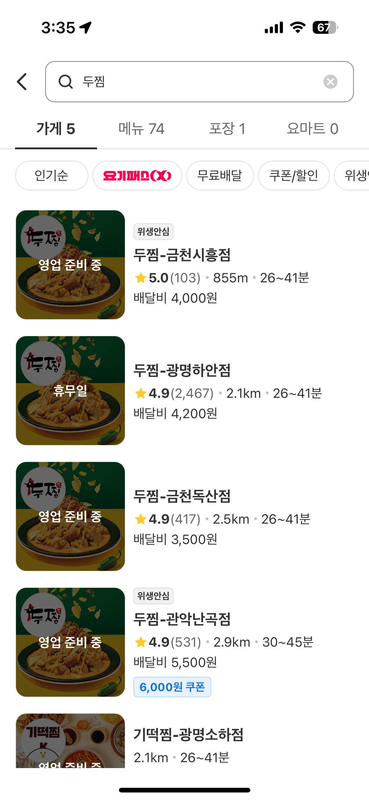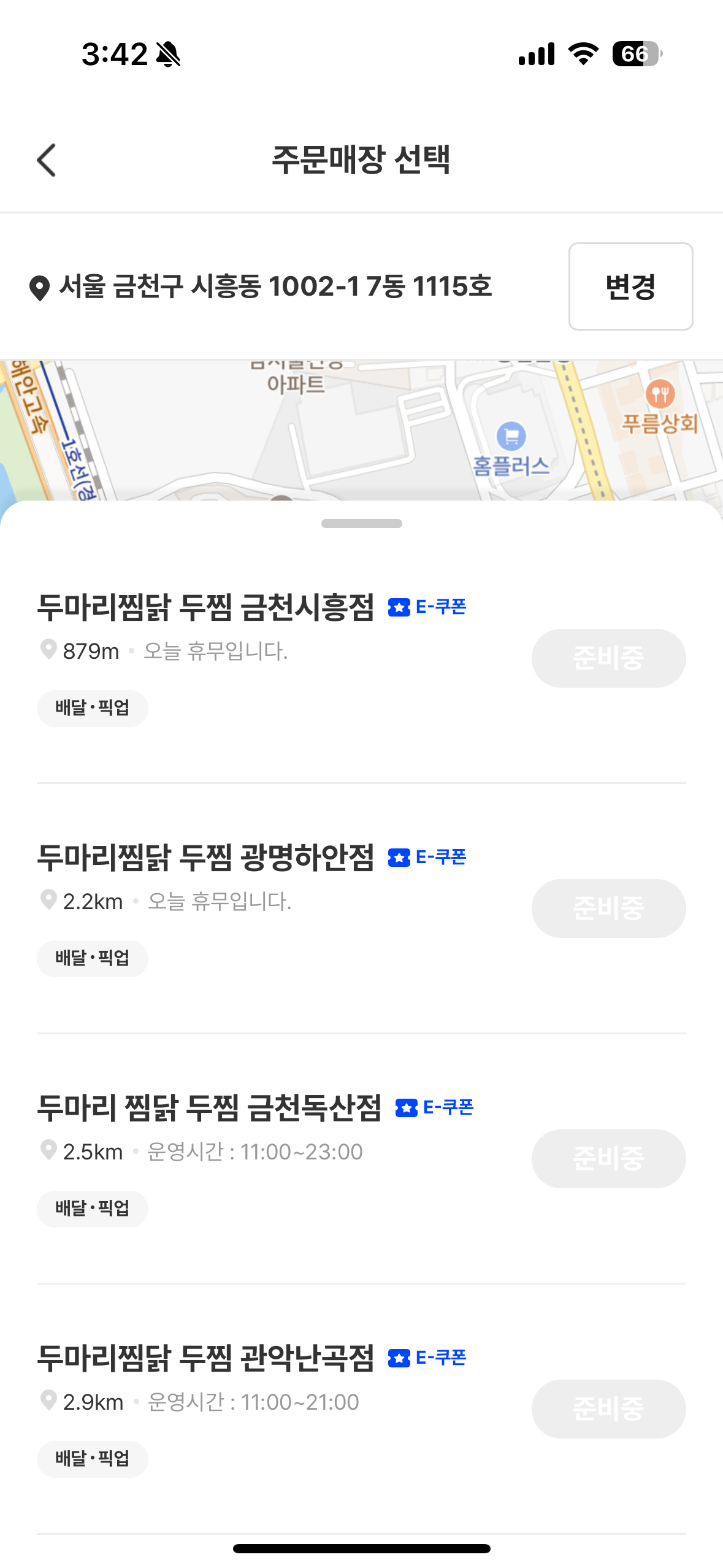 요기요와 마찬가지로 모든 두찜 매장이 다 준비중이다.