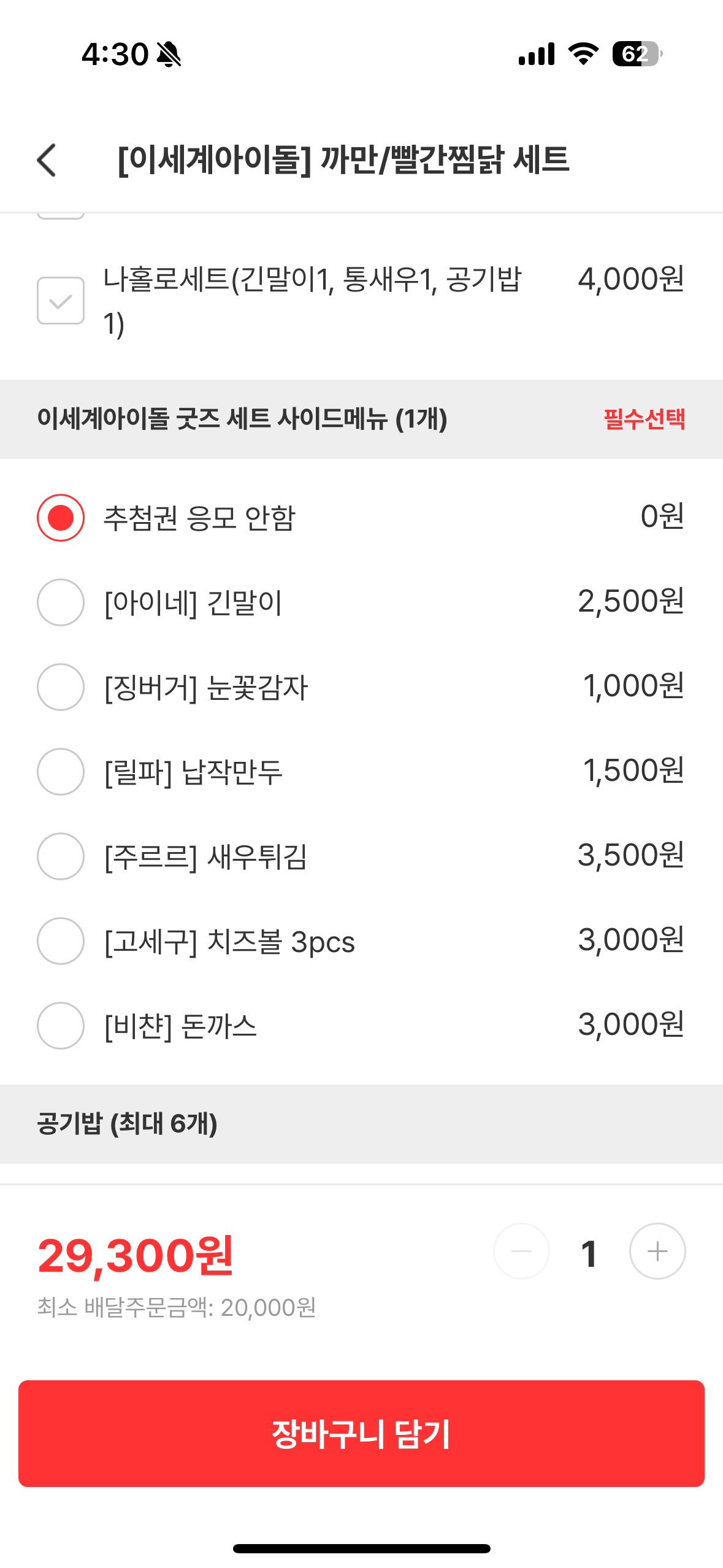 굿즈 사이드 메뉴 응모권은 뭔지 잘 모르겠다. 응모 안함으로 하려다 릴파로 응모 완료!
