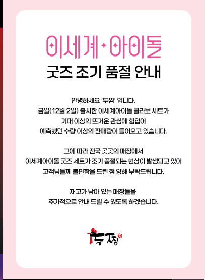 참... 여러모로 대단하다. 보통 이런 이벤트를 진행 하면 하루 이틀 혹은 몇일동안 진행하는데 12월 2일 딱 하루만에 조기품절이 되었다.