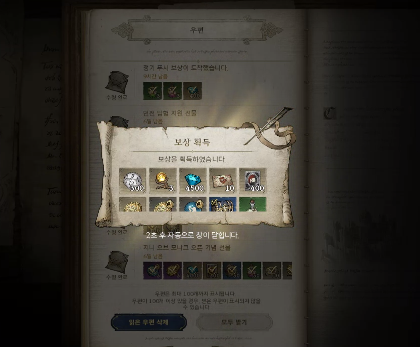 아이템이 지급되었다고 뜬다.