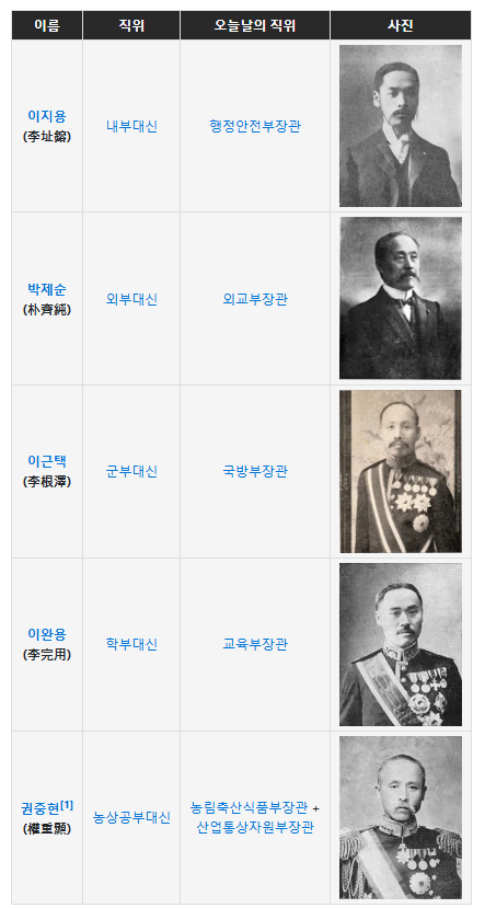친일반민족행위자 즉 매국노 5명을 뜻한다.