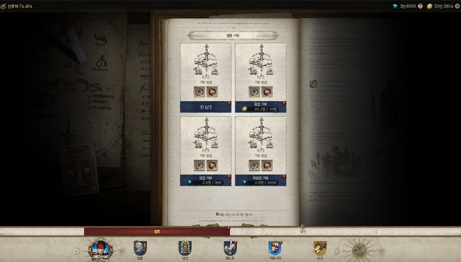 일일,주간,반복 미션 다양하게 있고 먹을것과 다이아를 받을 수 있다.