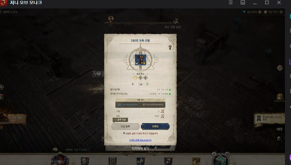 인은 기회가 3번 있고 다 실패 더이상 인챈은 불가능하다. 좀더 해봤지만 역시나... 나랑은 안맞는듯 하다.