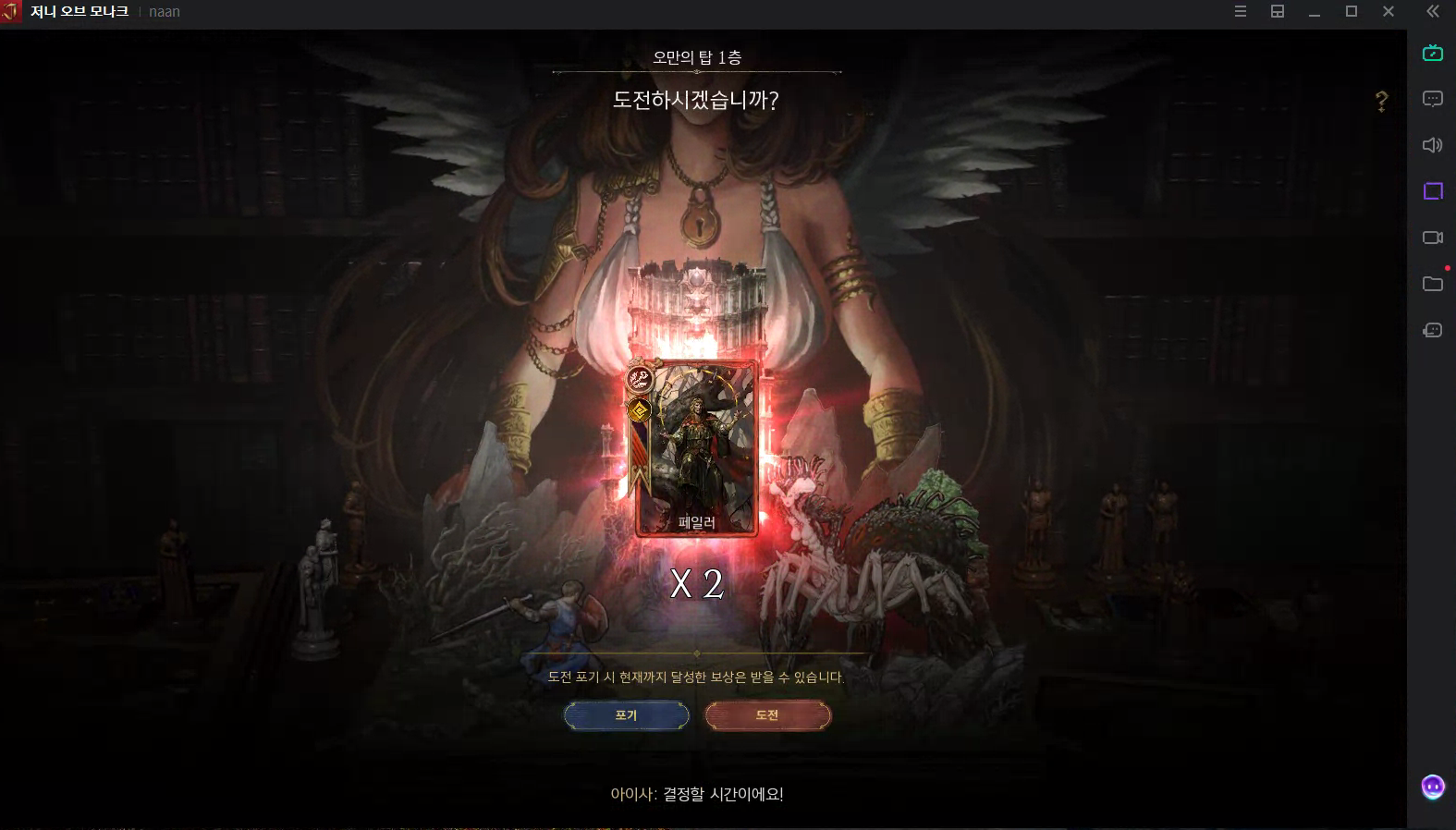 이럴경우 주사위를 돌려서 아이템 업그레이드, 물약 도핑, 영웅 승급을 해주자.
