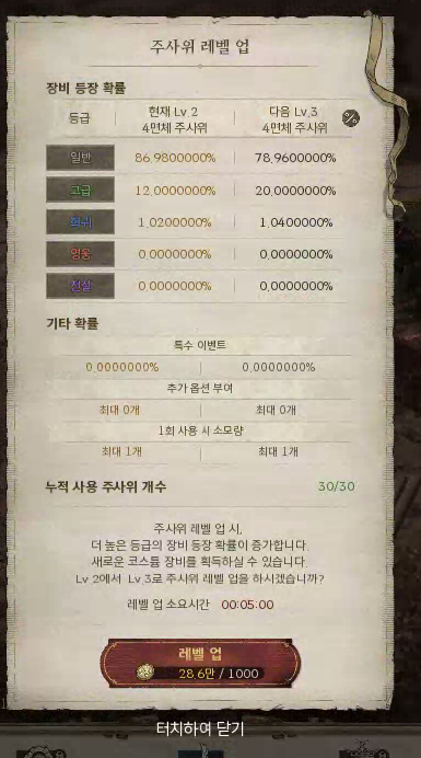 ㅎㅎㅎ 나올 확률이 레벨업을 해줘야 그나마 영웅이나 전설이 나온다. 그때 그때 꼭 레벨업 해주자.
