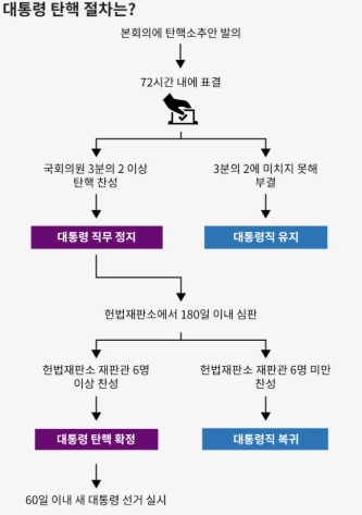 기본적인 룰은 위와 같다. 국회의원 3분의 2이상 탄핵 찬성을 해야 헌법재판소에 대통령 탄액안을 산정할수 있다.