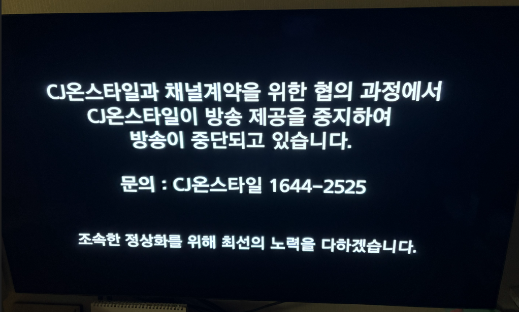 현재 케이블TV 세 곳의 CJ온스타일과 CJ온스타일 플러스 채널에서는 "CJ온스타일에서 방송 제공을 중지하여 방송이 중단되고 있다"는 화면이 노출되는 중이다.