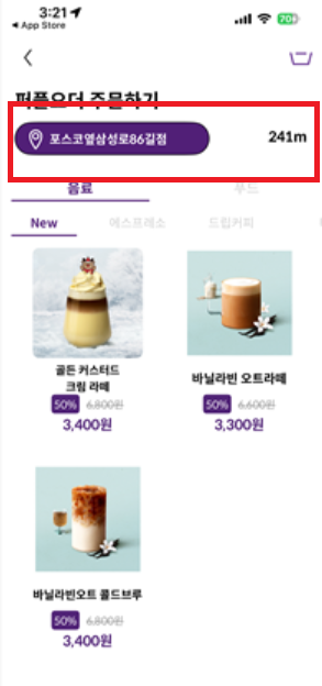 어플을 설치 하고 매장 하나씩 클릭해서 들어가보면 위와 같이 50프로가 자동으로 할인 적용되면 그 매장은 50프로 할인 매장이다.