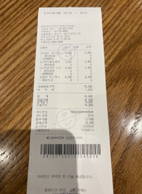 16,600원 나왔다. 음료만 50프로고 나머지는 정가로 받는다. 케익만 안먹었으면 음료 3개에 1만원밖에 안한것이다.