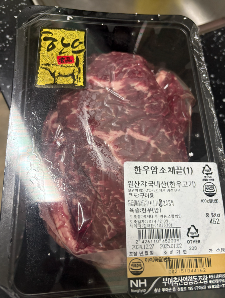 채끝은 이렇게 왔다. 채끝은 이력추적이 가능한 바코드가 있어서 좋았지만 도축일이 12월9일인데.... 지금은 12월 28일이고 좀 된 고기로 보인다.(보통 숙생되어서 맛이 더 좋다는 이야기가 있긴한데.. 뭐 맛만 좋으면 되는건가..?) 이것도 살짝 아쉽다.