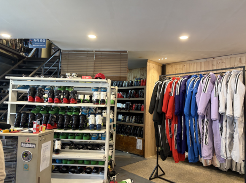 강촌 스키장 초입에 5~6개 정도 렌탈 업체들이 있다. 그중에 하나 선택 했다.