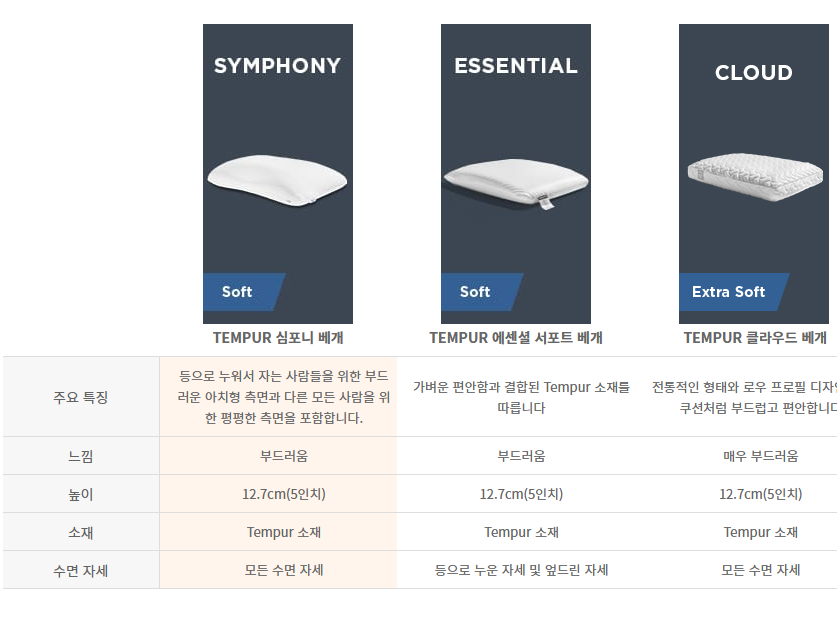 Tempur-Pedic 심포니 베개 화이트 스탠다드 럭셔리 소프트 필 구매 후기