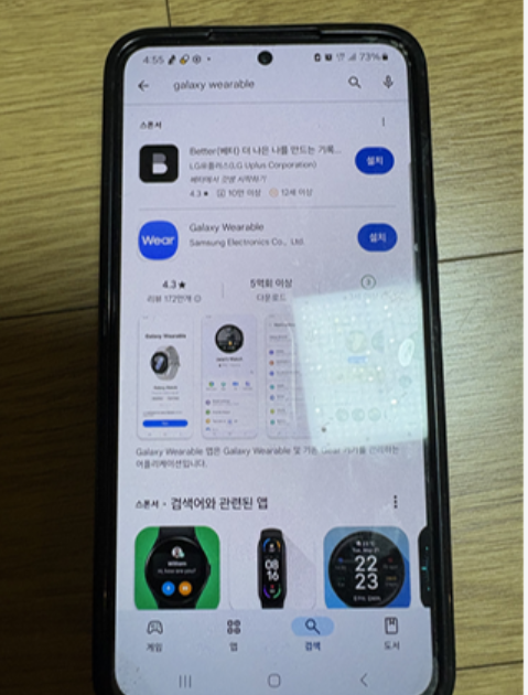 갤럭시워치를 사용하려면 Galaxy Wearable 어플을 설치 해야 한다.